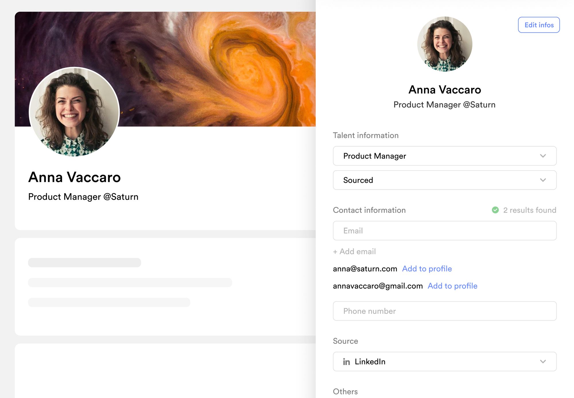 When using Crew, you can source candidates from Dribbble, LinkedIn, GitHub, or any platform with just 1 click, thanks to the powerful Chrome extension. No more manual data entry. You can even then enrich the info, before sending multi-channels sequences (automated messages and follow-ups).