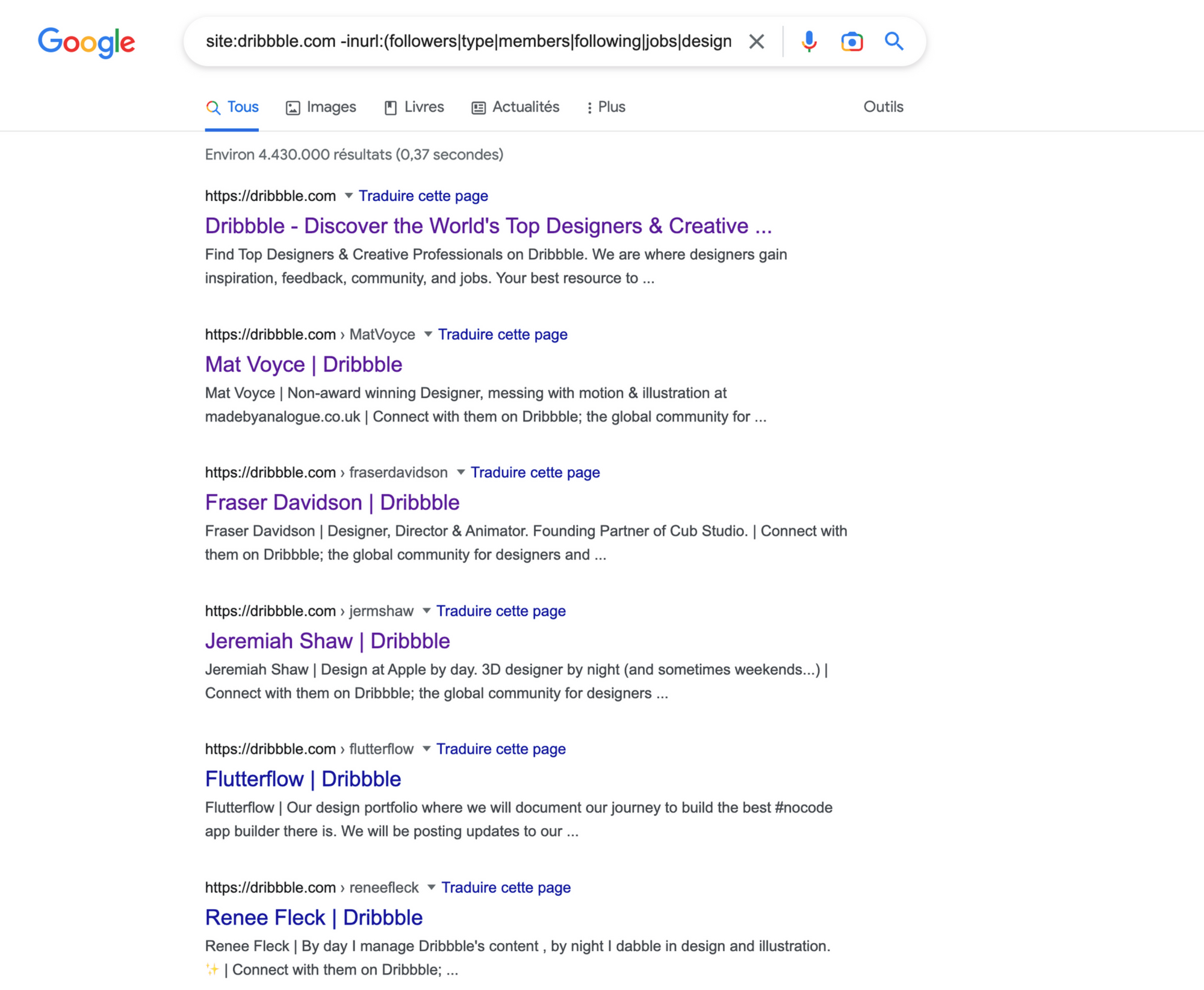 Lastly, say that I am also looking for a rock star designer. To avoid empty profiles and improve quality, I want profiles with liked shots between 1000 and 10 000. You can then use the Numrange (..) function and type the following in Google’s search bar: