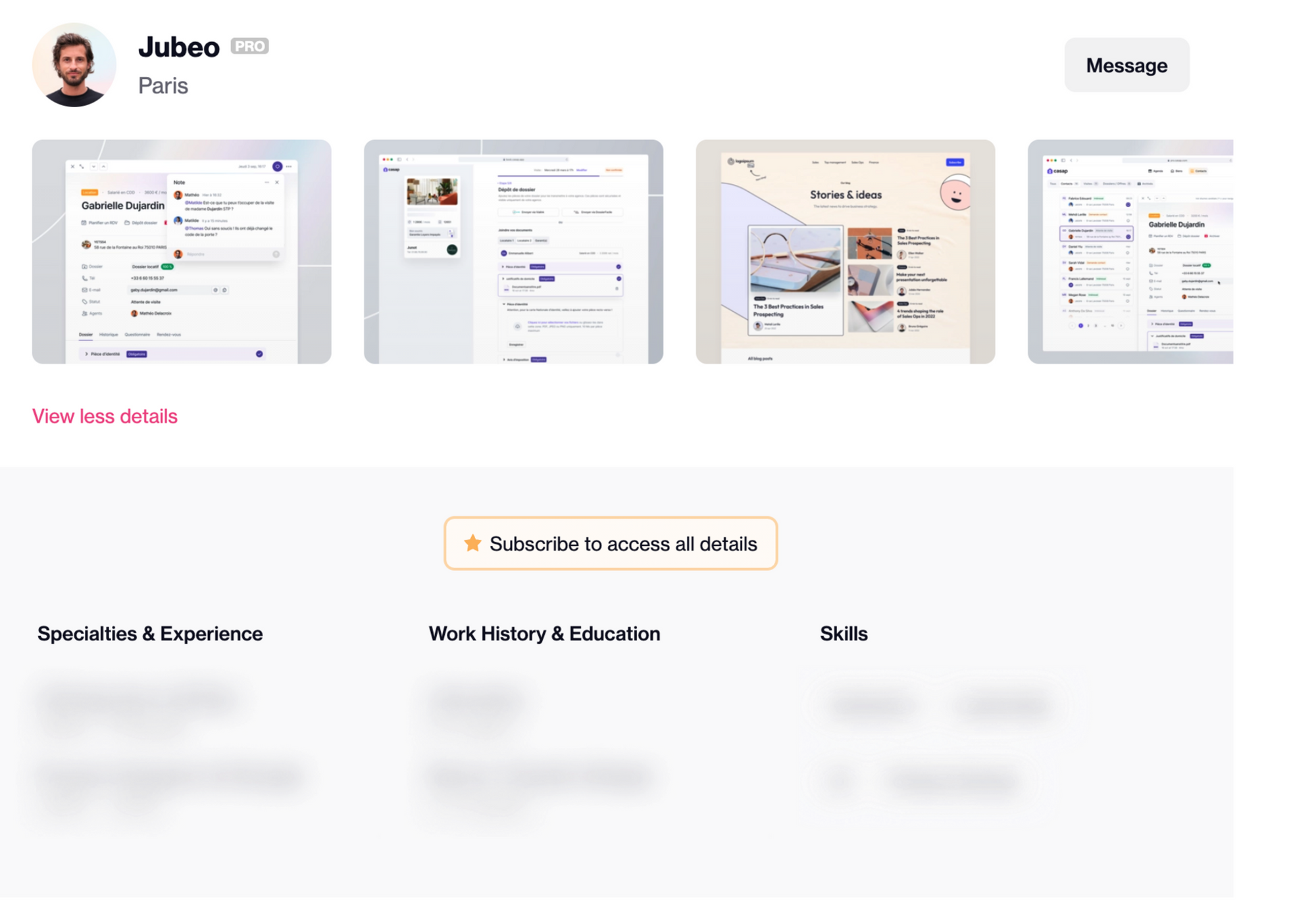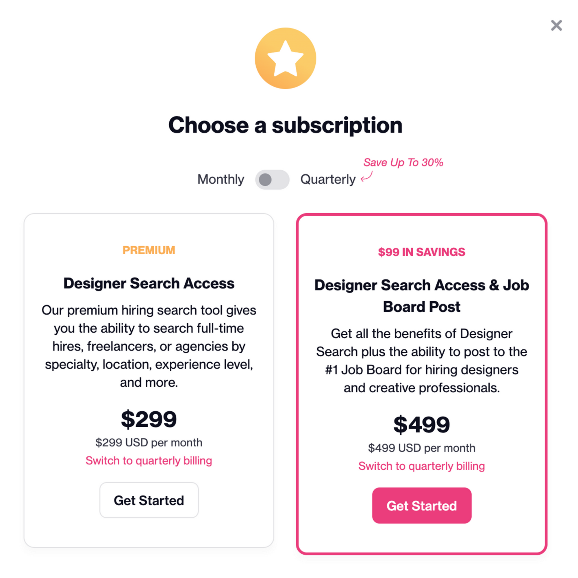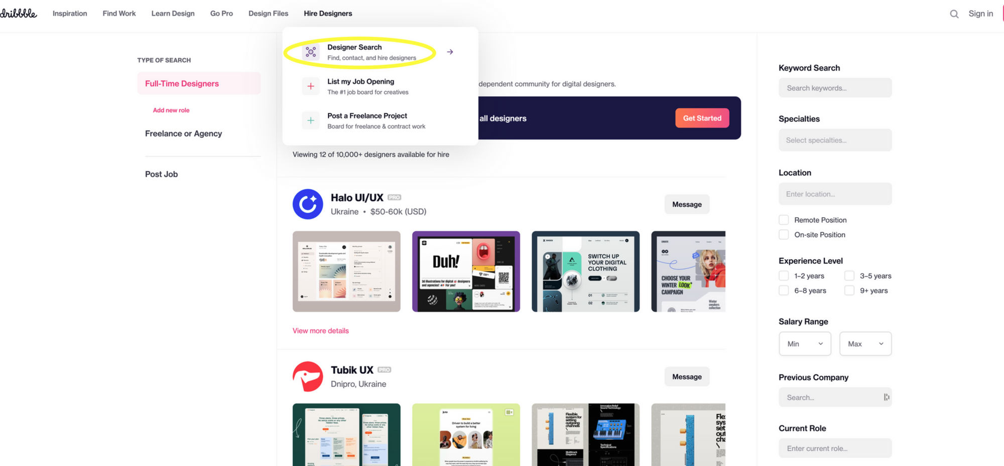 A bit like LinkedIn, Dribbble now let designers give more information about their profiles (experiences and work history, current role, education, and skills), and with the subscription plan you can have access to this database and filter it with precision. This premium subscription costs $299 a month.