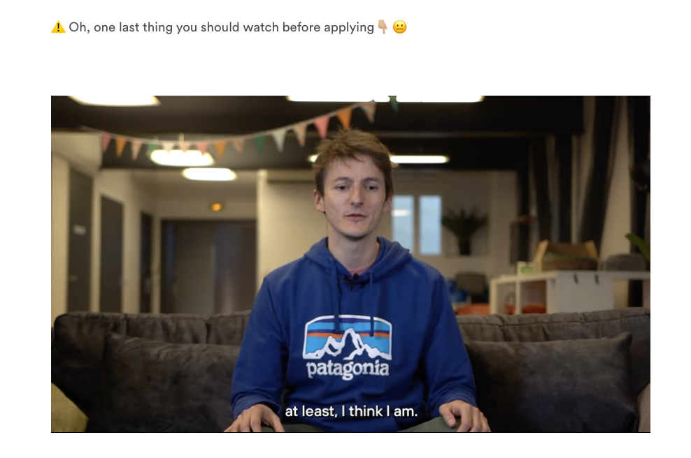 - J'aime beaucoup que Virgile Raingeard, le PDG, ait fait une vidéo rapide (sur Loom) où il explique pourquoi ils ont créé l'entreprise, comment l'outil fonctionne, quelle est leur mission et quels sont leurs objectifs, etc. Une façon vraiment cool, facile et assez originale de présenter l'entreprise ✨